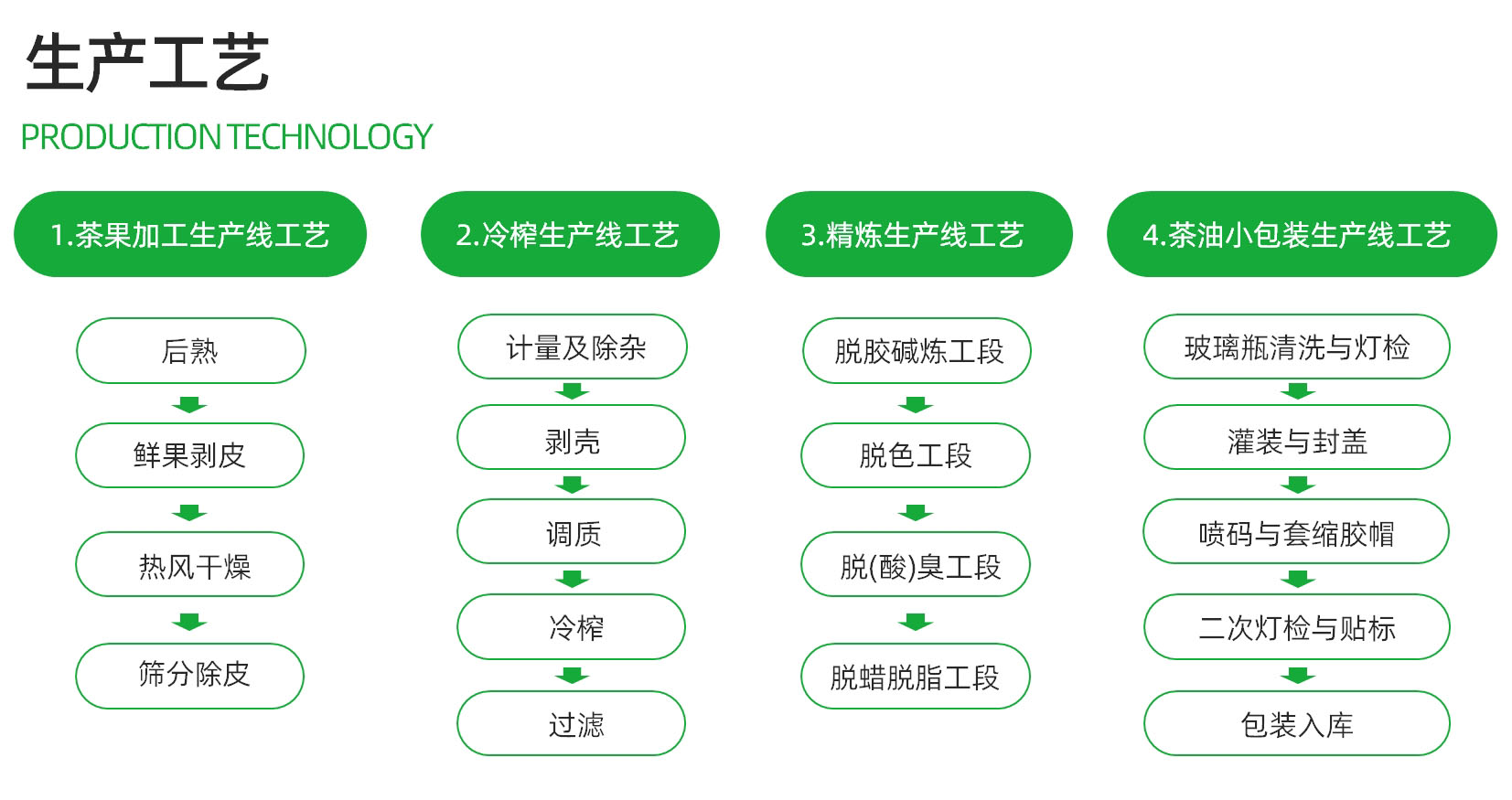 公司引進先進的冷榨及物理精煉成套設備。